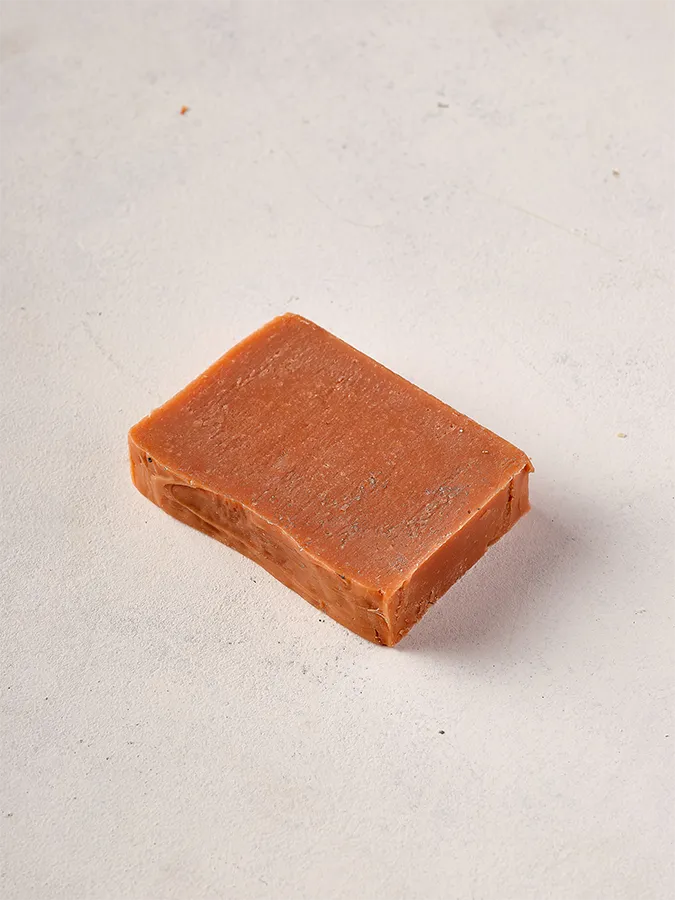 סבון עם חימר אדום, מתאים לכל סוגי העור, ובעל תכונות של הזנה וריכוך.